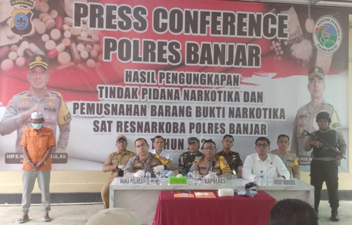 Pernyataan tersebut diungkapkan Kapolres Banjar AKBP M Ifan Hariyat Taufik digelaran Press Conference hasil ungkap kasus tindak pidana narkotika dan pemusnahan Barang Bukti (BB) pada Sat Resnarkoba Polres Banjar, Senin (30/9/2024).