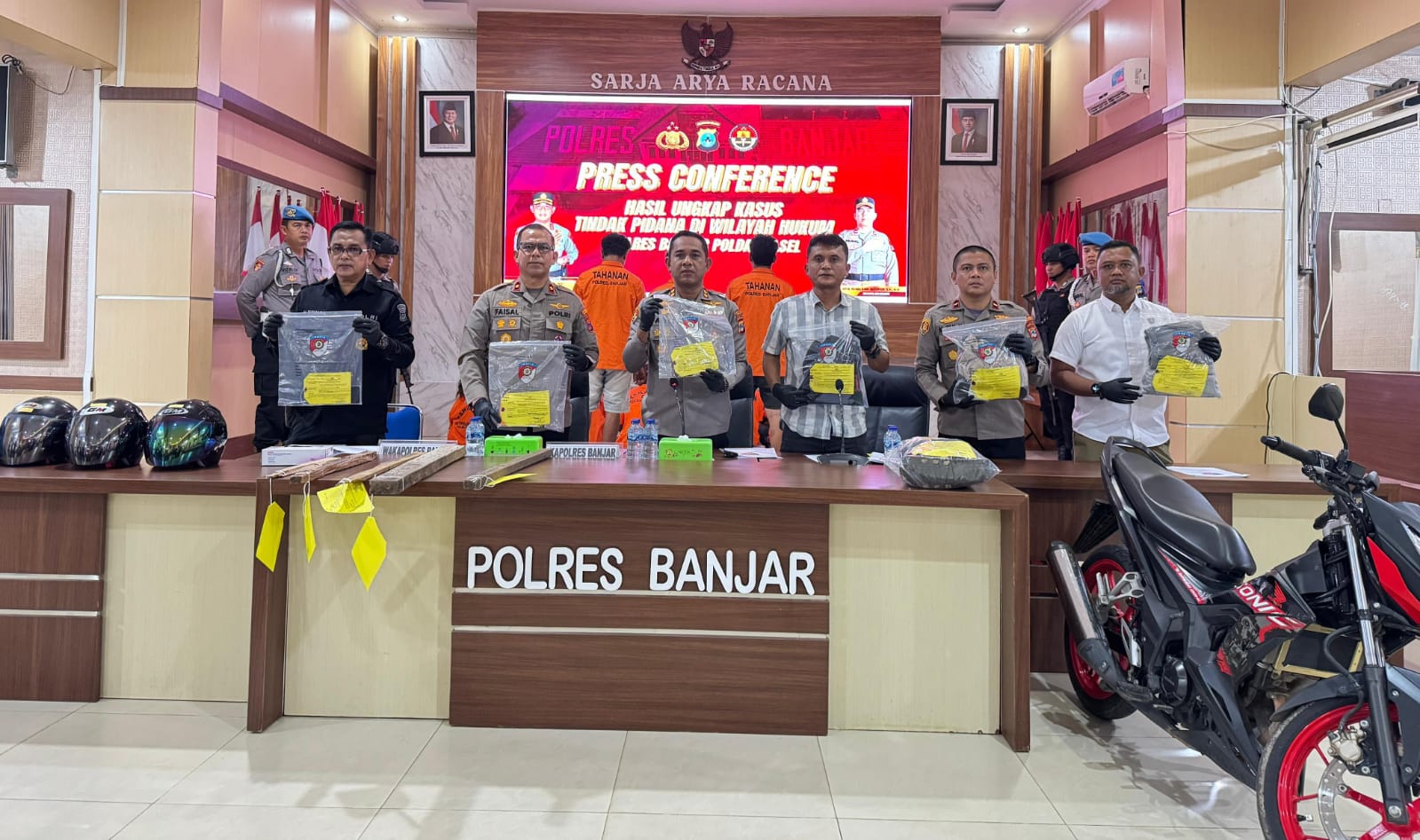 Kapolres Banjar, AKBP Dr Fadli dalam Press Conference yang dilaksanakan di Aula Sarja Arya Racana Mapolres Banjar pada Selasa (5/8/2025) mengungkapkan, dari total delapan orang yang ditetapkan sebagai tersangka, satu tersangka perempuan berinisial LI (32) masuk dalam Daftar Pencarian Orang (DPO).