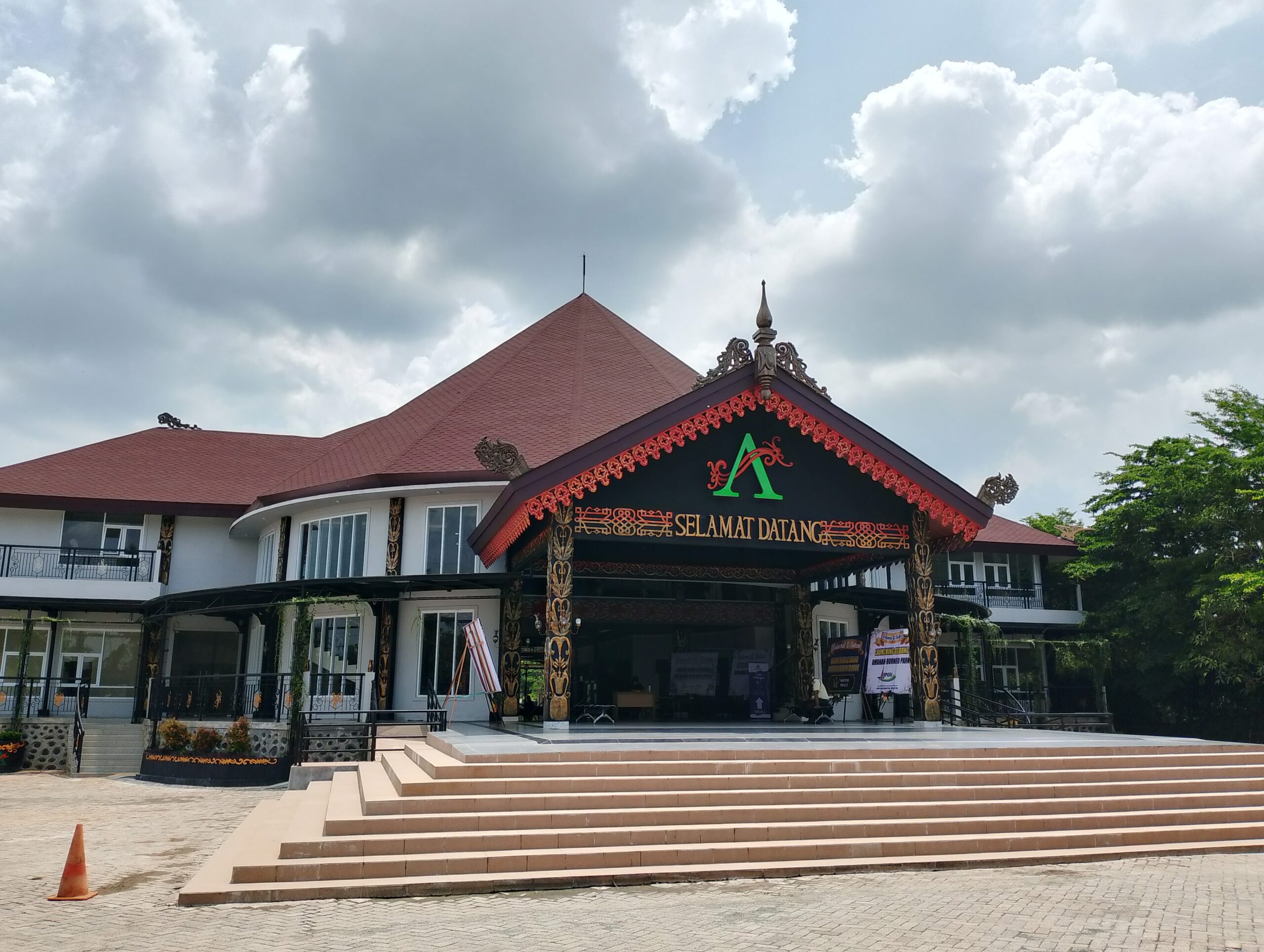 Link, Banjarbaru – Gedung Amanah Borneo Park (ABP) yang berdiri megah, menyambut para pengunjung tersebut. Tak hanya menjadi pintu masuk saja, namun didalamnya terdapat aula-aula yang bisa dijadikan tempat berkegiatan.
