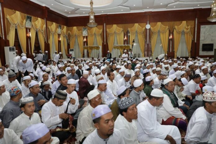 Link, Banjarmasin – Ribuan jamaah padati Mahligai Pancasila, Banjarmasin sejak sore hari untuk bersama-sama mengikuti acara pembacaan manaqib Syekh Samman Al-Madani.