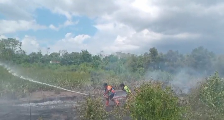 Link, Martapura – Teriknya cuaca belakangan ini membuat kawasan-kawasan langganan kebakaran hutan dan lahan (Karhutla) mulai terjadi. Diantaranya lahan dan semak belukar di kawasan Desa Sungai Batang, Kecamatan Martapura Barat, Kabupaten Banjar.