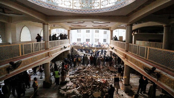 Link, Pakistan –  Biadab! Bom bunuh diri meledak di sebuah masjid di komplek polisi, Peshawar, Pakistan. Insiden tak berprikemanusiaan tersebut 100 orang mayoritas personal kepolisian tengah melaksanakan salat meninggal.