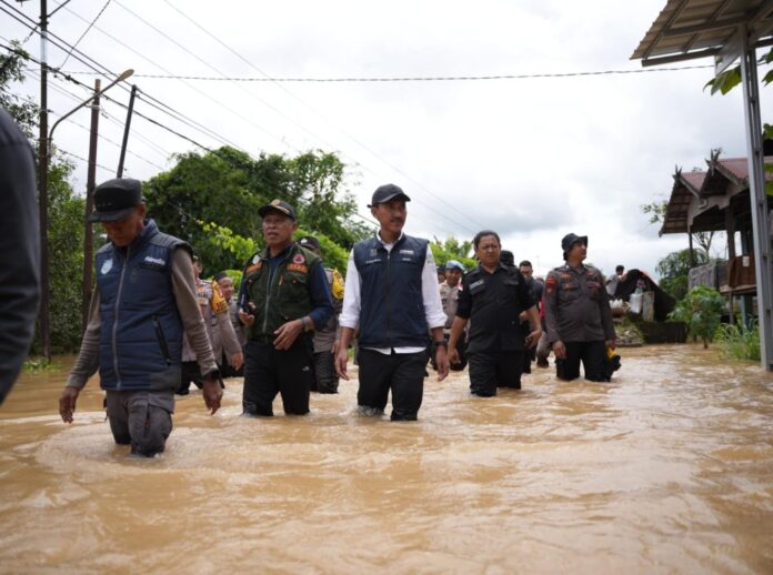 Link, Martapura – Bupati Banjar H Saidi Mansyur lakukan pantauan sekaligus serahkan bantuan sejumlah sembako kepada warga terdampak banjir di Desa Pengaron, Kecamatan Pengaron, Senin (27/1/2025) siang.