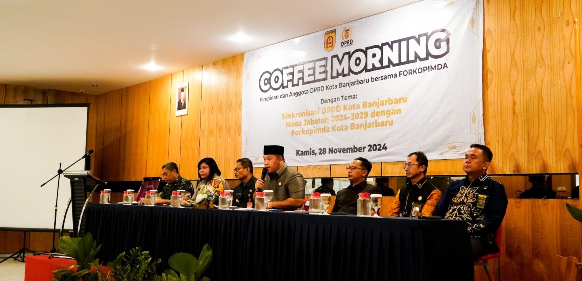 Link, Banjarbaru – Agenda rutin DPRD Kota Banjarbaru bersama dengan Forum Komunikasi Pimpinan Daerah (Forkopimda) Kota Banjarbaru, kembali dilaksanakan. Kali ini agenda Coffee Morning dalam rangka sinkronisasi dan silaturahmi, dilaksanakan di salah satu hotel di Jl. A. Yani pada Kamis (28/11/24)