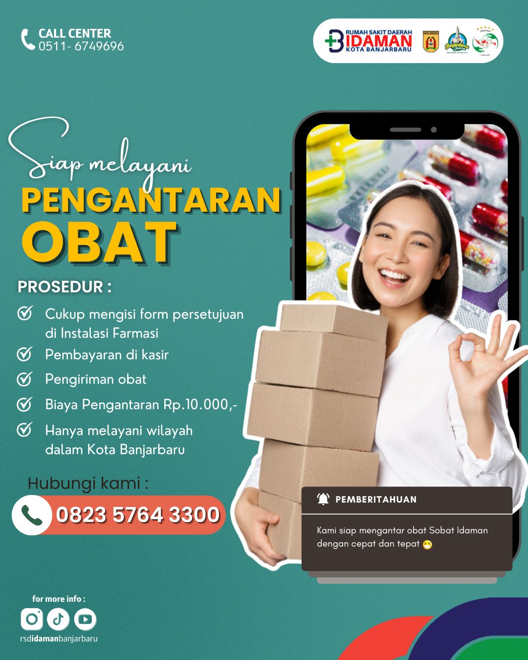 Link, Banjarbaru– Bagi masyarakat Kota Banjarbaru, yang sedang menjalani rawat jalan di Rumah Sakit Daerah (RSD) Idaman Banjarbaru. Bisa menggunakan pelayanan teranyar dari RSD Idaman, yaitu pengantaran langsung obat ke rumah.