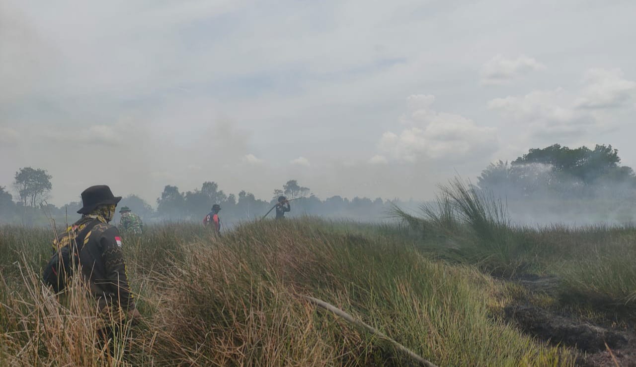 2 jam lebih penanganan oleh tim gabungan Badan Penanggulangan Bencana Daerah (BPBD) Kabupaten Banjar berhasil padamkan api yang membakar vegetasi semak belukar dan pepohonan.