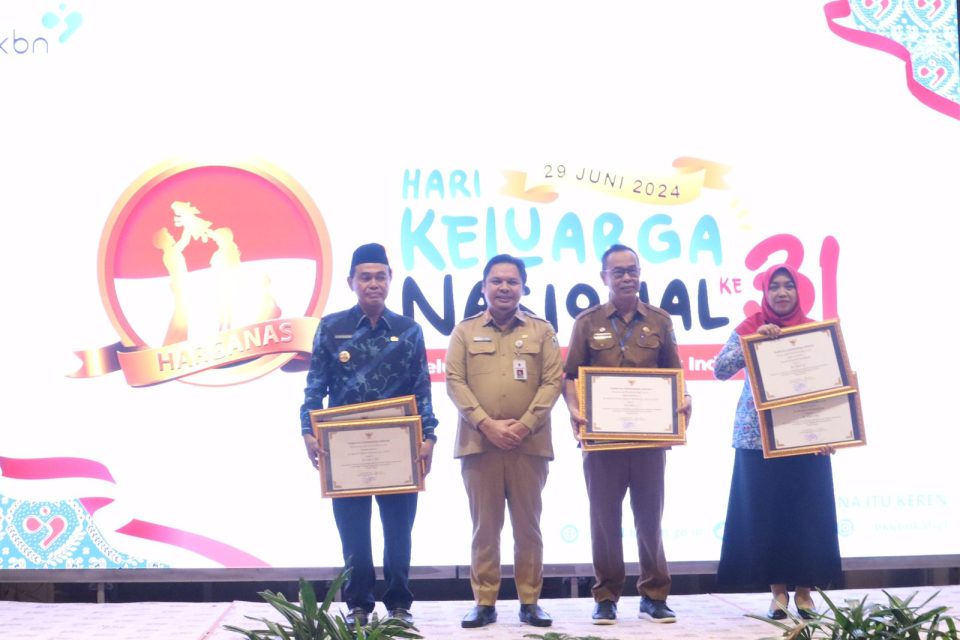 Kegiatan dihadiri Deputi Bidang Advokasi, Penggerakan dan Informasi (ADPIN) BKKBN RI, Sukaryo Teguh Santoso, Sekda Provinsi Kalsel Roy Rizali Anwar, serta Bupati Wali Kota penerima penghargaan. (wahyu)