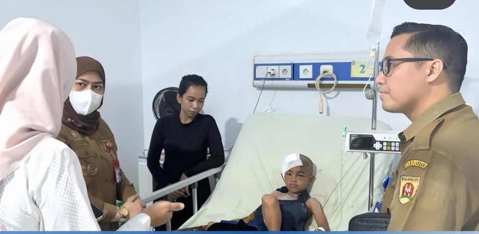 Link, Banjarbaru – Bentuk keprihatinan dan perhatian pemerintah daerah, Walikota Banjarbaru Hj Erna Lisa Halaby mengunjungi Muhammad Amin (7) seorang anak kecil yang menjalani perawatan di RSD Idaman Banjarbaru, Senin (30/3/2026). Sebab, insiden penyerangan oleh Orang Gangguan Jiwa (ODGJ) yang terjadi di Kecamatan Cempaka.