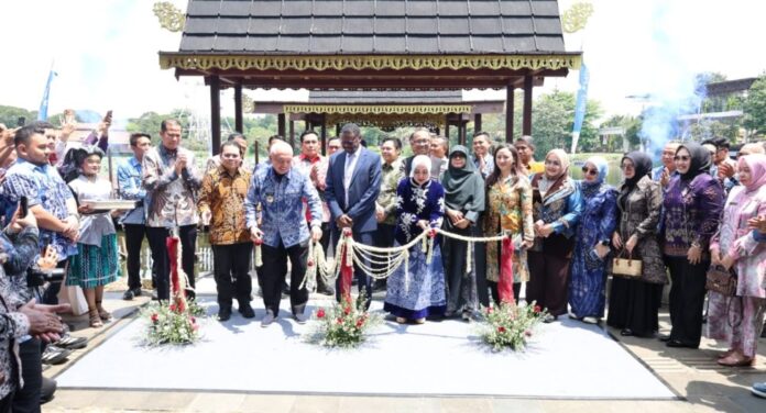 Link, Jakarta – Gubernur Kalimantan Selatan, H. Muhidin bersama Ketua TP PKK Provinsi Kalimantan Selatan, Hj. Fathul Jannah menghadiri sekaligus meresmikan Dermaga Pasar Terapung Air Tawar di kawasan Taman Mini Indonesia Indah (TMII) Jakarta, yang ditandai dengan penandatanganan prasasti serta pemotongan pita di dermaga, Sabtu (11/4/2026).