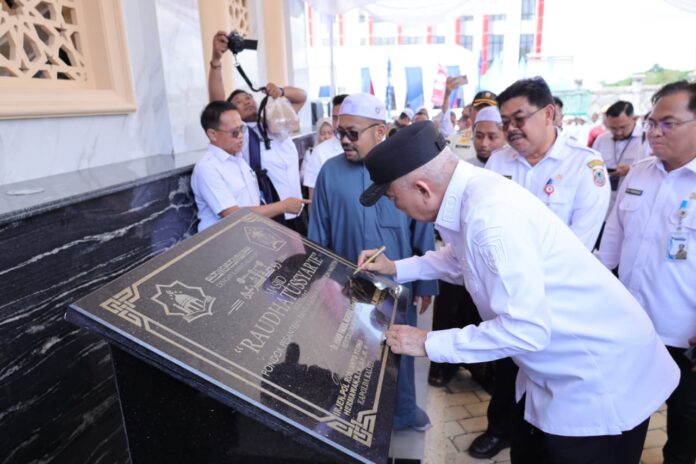 Link, Banjarbaru- Suasana hangat dan penuh kebersamaan terasa saat Gubernur Kalimantan Selatan, H. Muhidin secara resmi menandatangani prasasti Masjid Raudhatussyar’ie di Jalan Kelapa Sawit 8 Bumi Berkat, Sei Besar, Kota Banjarbaru, Rabu (5/11/2025).