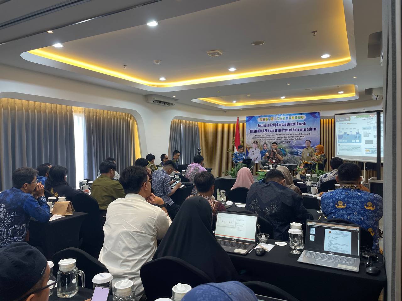 Plt Kepala Dinas Pekerjaan Umum dan Penataan Ruang (PUPR) Kalsel, M. Yasin Toyib, yang diwakili oleh Kepala Seksi Penyehatan Lingkungan Permukiman dan Air Minum, Angga Rinaldi Rizal, menyampaikan pentingnya JAKSTRADA dalam mendukung pencapaian target layanan air minum dan sanitasi yang layak.