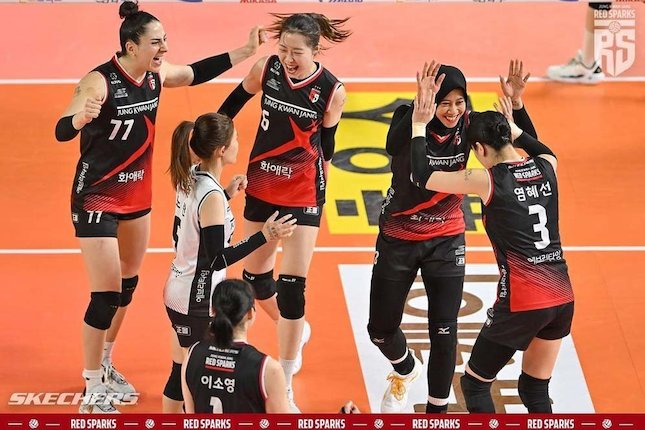 Link, JakartaDaekeon Red Spark dengan susah payah sukses menjinakkan Hyundai Hillstate di laga lanjutan putaran VI Liga Voli Putri Korea Selatan 2023/2024 di Suwon Gymnasium, Sabtu (2/3/2024) siang WIB.