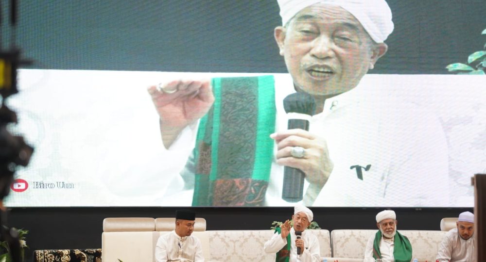 Acara ini juga disirami dengan syahdunya lantunan do’a yang dipimpin Habib Ali Alaydrus, serta lantunan ayat suci Al-Qur’an oleh Qori’ah Robiyatul Adawiyah.