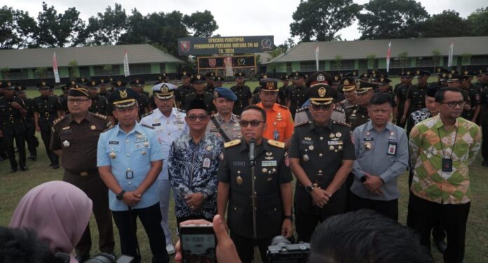 Link, Banjarbaru – Gubernur Kalimantan Selatan H. Muhidin melalui Asisten Administrasi Umum Setdaprov Ahmad Bagiawan menghadiri upacara penutupan Pendidikan Pertama Bintara Tentara Nasional Indonesia (TNI) Angkatan Darat Gelombang I Tahun Anggaran 2024, yang digelar di Lapangan Kejujuran Rindam VI/Mulawarman, Banjarbaru, Kamis (9/1/2024) pagi.
