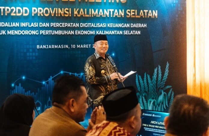 Link, Banjarmasin – Gubernur Kalimantan Selatan, H. Muhidin membuka kegiatan High Level Meeting (HLM) Tim Pengendalian Inflasi Daerah (TPID) serta Tim Percepatan dan Perluasan Digitalisasi Daerah (TP2DD) di Ruang Rapat Sasangga Banua, Lantai 2 Eks. Kantor Gubernur Kalsel, Kota Banjarmasin pada Senin (10/5/2025) sore.