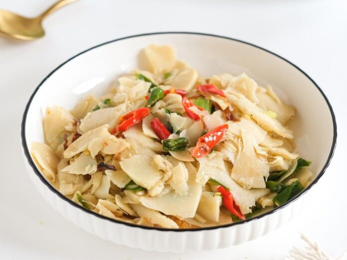 Rebung yang sedang musim bisa diolah jadi beragam lauk enak. Tumis dengan cabe, dibuat sayur gurih atau dibuat isian lumpia Semarang yang gurih sedikit manis.
