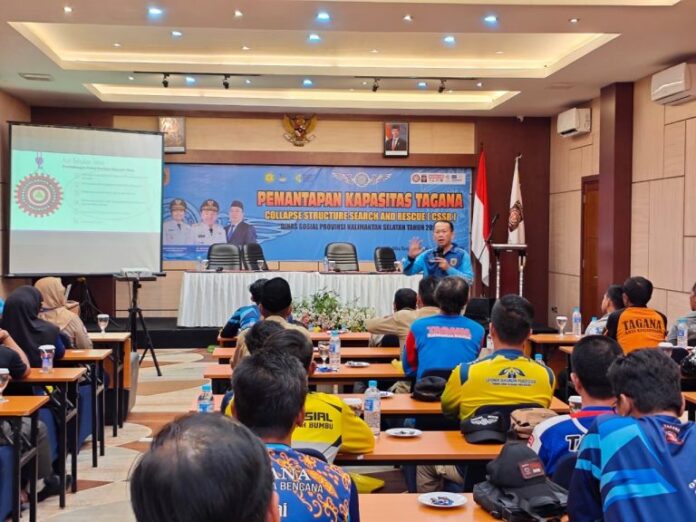 Link, Banjarmasin – Dinas Sosial Provinsi Kalimantan Selatan menggelar kegiatan Collapsed Structure Search and Rescue (CSSR) atau pelatihan pencarian dan pertolongan korban pada bangunan runtuh. Kegiatan yang berlangsung selama tiga hari ini menghadirkan narasumber nasional yaitu Ade Hermawan, selaku praktisi kebencanaan dari Direktorat Perlindungan Sosial Korban Bencana Alam, Ditjen Linjamsos Kementerian Sosial RI.