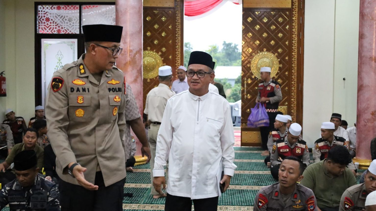 Link, Banjarbaru- Gubernur Kalimantan Selatan, H. Muhidin melalui Asisten Administrasi Umum, Ahmad Bagiawan menghadiri buka puasa bersama Polda Kalimantan Selatan di Masjid Riyadus Shalihin, Kantor Polda Kalsel di Jl. Bina Praja Timur, Kota Banjarbaru pada Kamis (20/3/2025) petang.