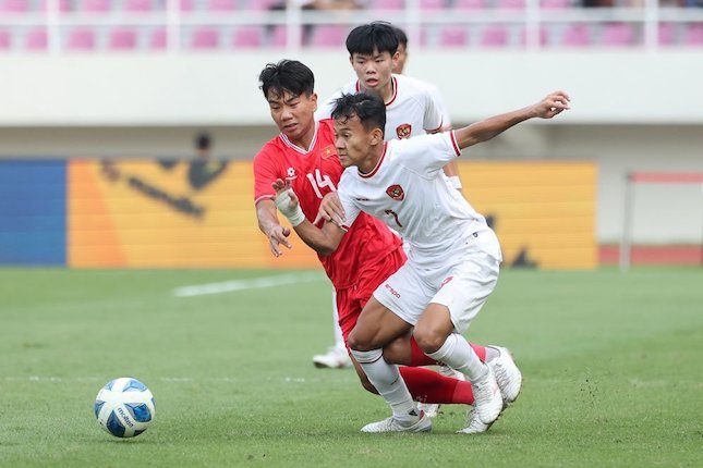 Timnas Indonesia memang mendominasi penguasaan bola. Namun anak asuh Nova Arianto kesulitan untuk membuat peluang bersih di depan gawang Timnas Vietnam U-16.