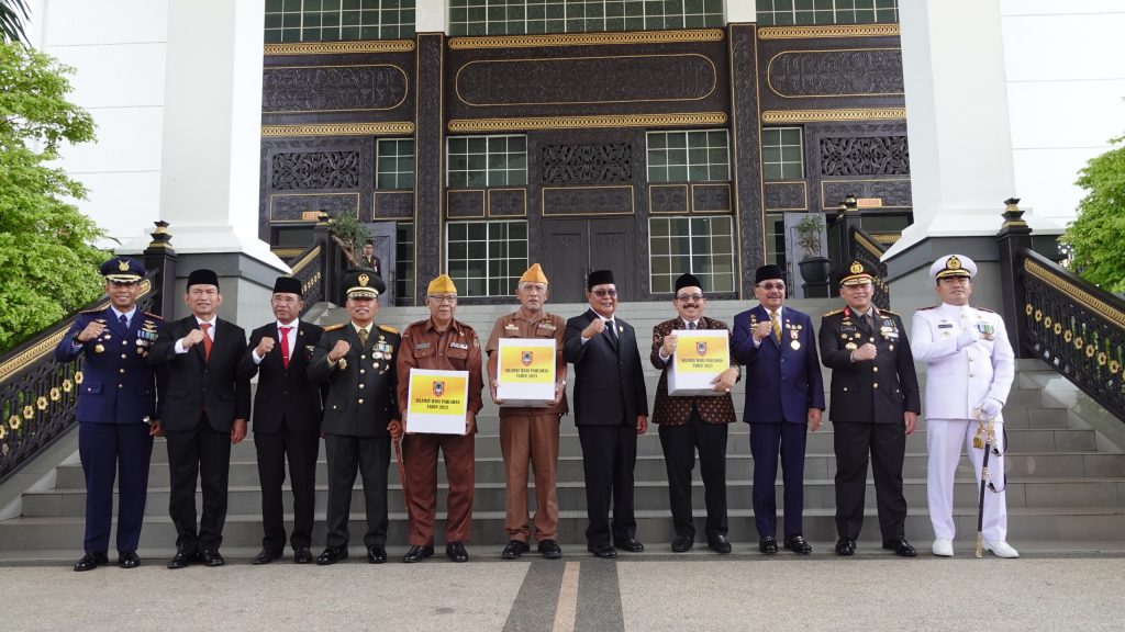 Usai upacara peringatan Hari Pahlawan, Paman Birin memberikan paket bantuan secara simbolis kepada perwakilan dari para veteran pejuang. (wahyu/BBAM)