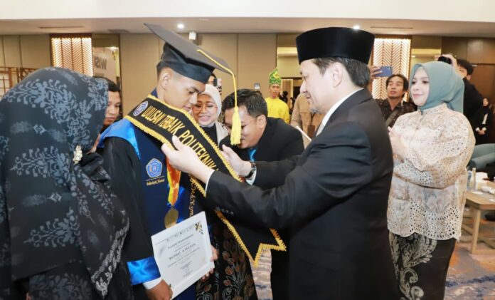 Link, Banjarmasin – Wakil Gubernur Kalsel Hasnuryadi Sulaiman menghadiri Wisuda Politeknik Hasnur ke-XI Program Ahli Madya tahun akademik 2024/2025, Sabtu (08/11/2025) di Rattan Inn Banjarmasin.