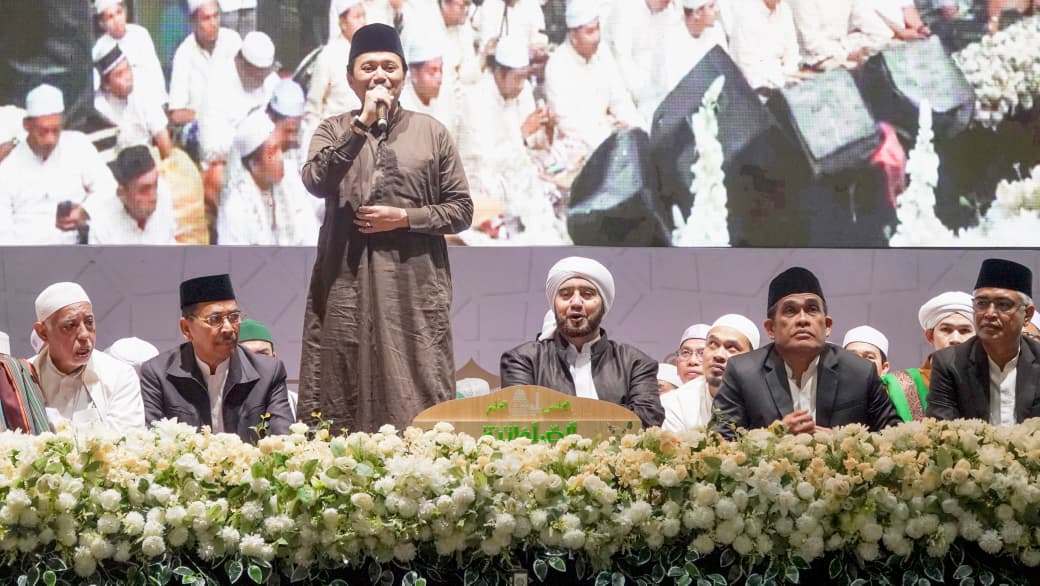 Seusai itu, Habib Syeikh pun memulai rangkaian acara bersholawat. Jamaah masyarakat dengan bendera Indonesia secara khidmat melantunkan syair pun mengalun, yang diiringi seluruh jemaah.