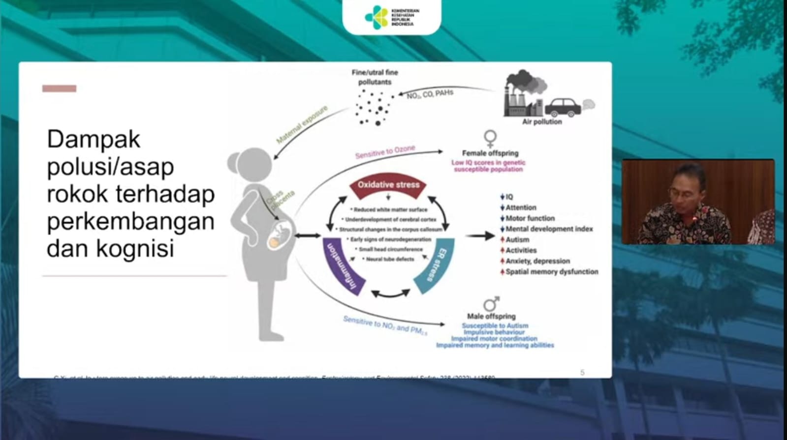 Piprim menjelaskan ibu hamil yang terpapar polusi dan asap rokok akan mengalami banyak masalah pada pertumbuhan janinnya, yang mana saat ini pemerintah sedang berupaya dalam menurunkan angka stunting hingga 14 persen pada 2024.