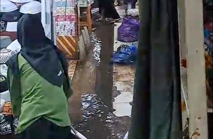 Kendati banjir genangan air meluap hingga masuk ke dalam toko tempatnya berjualan dengan ketinggian air semata kaki atau kurang lebih 5 Cm. Namun, Ahmad Siddiq mengaku tidak ada barang dagangannya yang terendam air banjir.