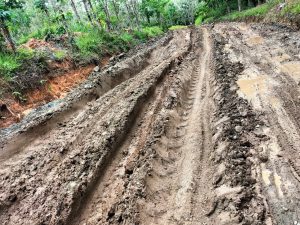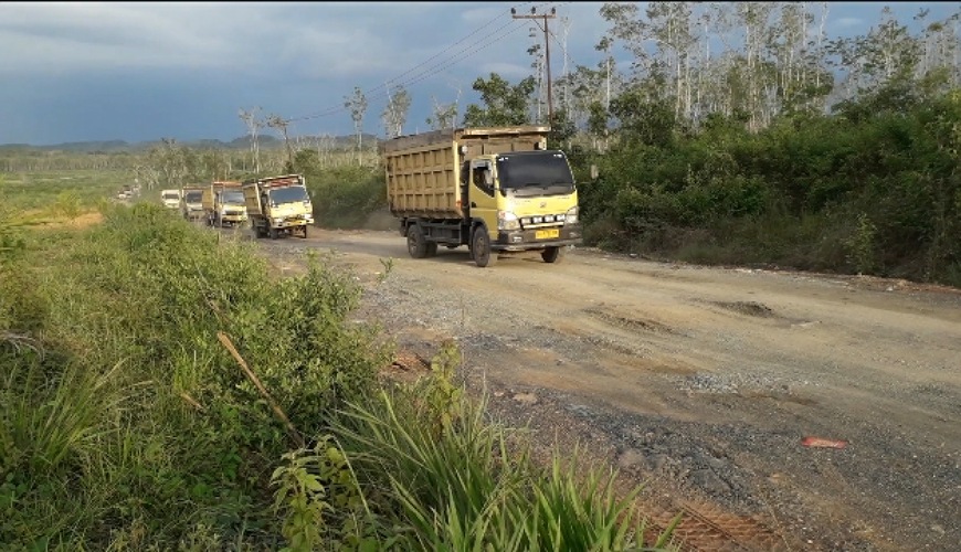 Diduga rusak parahnya kondisi jalan yang dibangun menggunakan APBD Pemkab Banjar TA 2017, setelah menjadi lintasan utama angkutan batubara di lokasi eks Perjanjian Karya Pengusahaan Pertambangan Batubara (PKP2B) milik PT Banjar Intan Mandiri (BIM).