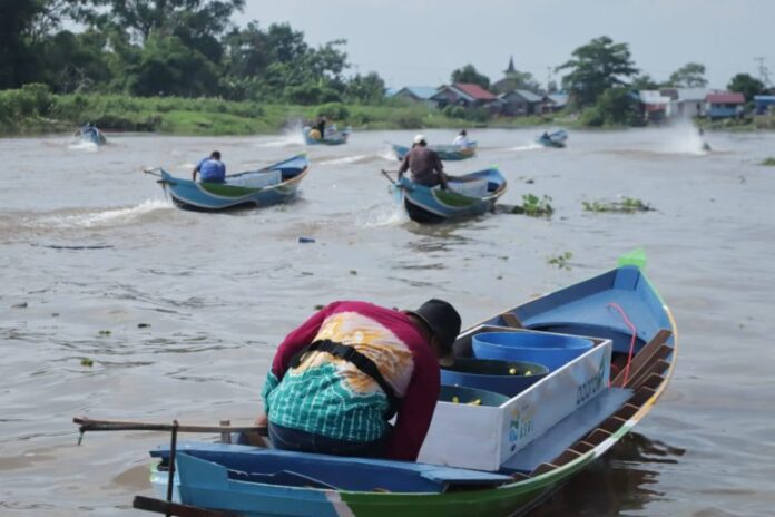 Link, Martapura – Guna menjaga kebersihan sungai, dan kelestarian lingkungan. Gubernur Kalimantan Selatan H. Sahbirin Noor menyerahkan 18 perahu sampah di Desa Sungai Rangas Tengah, Kabupaten Banjar, Kamis (14/12) pagi.