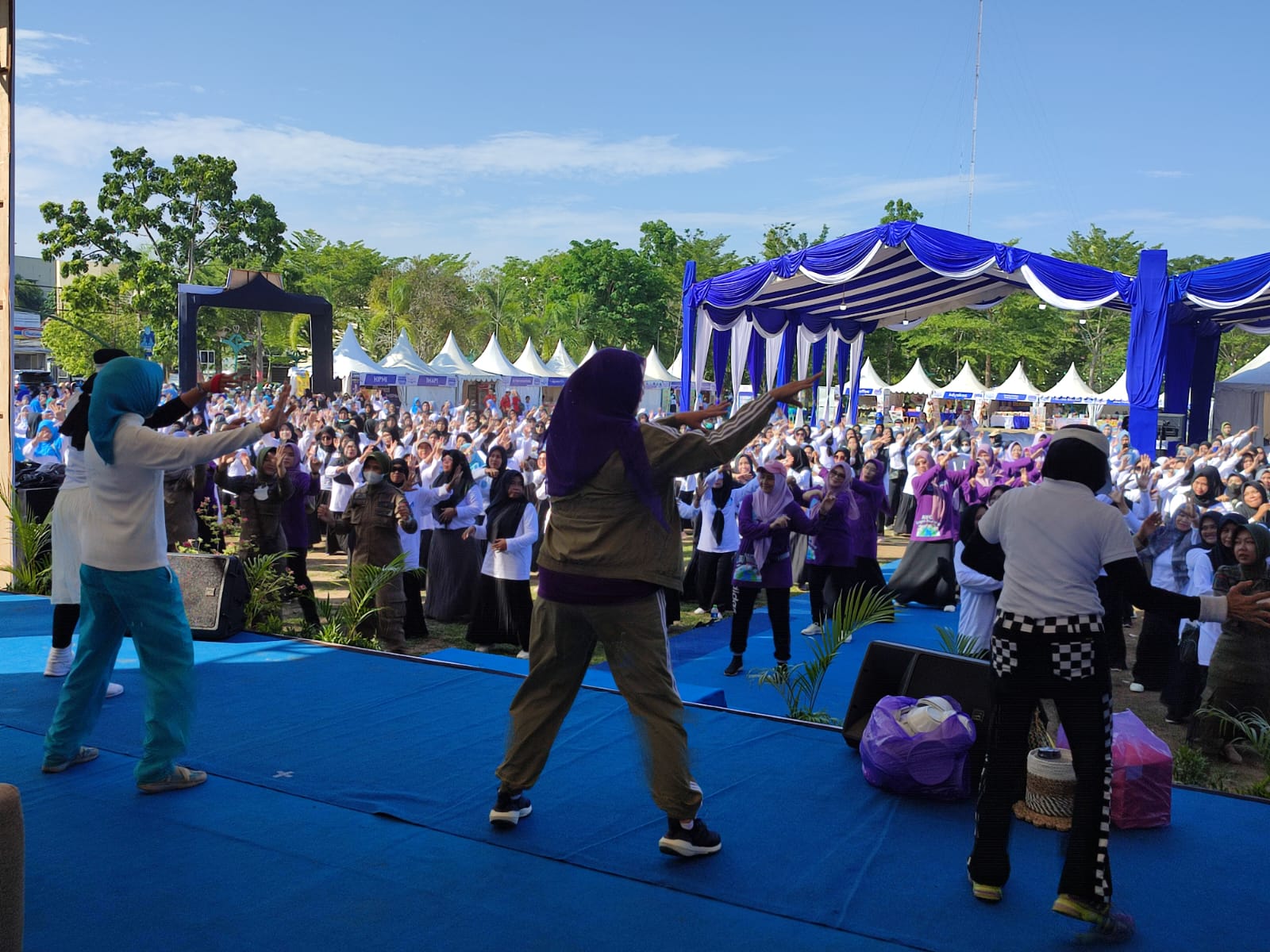 Link, Martapura – Ratusan Kader Posyandu, perwakilan Desa dan Kelurahan se-kabupaten Banjar ikuti senam pagi. Senam pagi ini digelar oleh Pemerintah Kabupaten Banjar melalui Dinas Kesehatan (Dinkes). Dalam rangka Jambore Kader Posyandu, di RTH Ratu Zalecha, Martapura Rabu (22/11/2023) pagi.