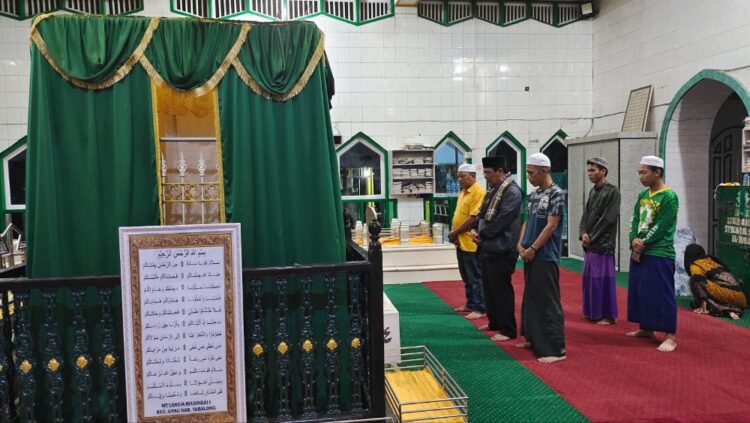 Di Depan Kubah Datu Kalampayan, Paman Birin bersama rombongan turut melakukan pembacaan tahlil dan ditutup dengan doa bersama.