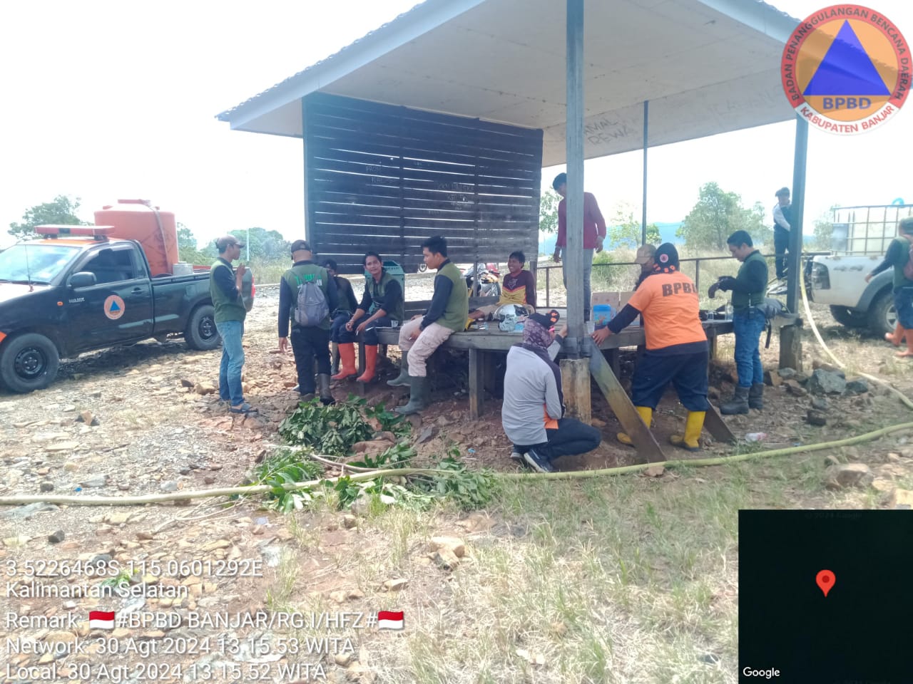 Tim Badan Penanggulangan Bencana Daerah (BPBD) Kabupaten Banjar, Posko Bukit Batu berjibaku dalam penanganan Karhutla yang terjadi di Desa Bukit Batu, Kecamatan Aranio, Kabupaten Banjar, Jumat (30/8/2024) siang.