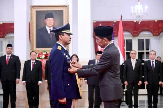 Link, Jakarta – Presiden Joko Widodo melantik Marsekal Madya TNI M Tonny Harjono sebagai Kepala Staf Angkatan Udara (KSAU) di Istana Negara, Jakarta, pada Jumat, 5 April 2024. Pelantikan tersebut digelar berdasarkan Surat Keputusan Presiden Republik Indonesia Nomor 20/TNI/Tahun 2024 tanggal 25 Maret 2024 tentang Pemberhentian dan Pengangkatan Kepala Staf Angkatan Udara.