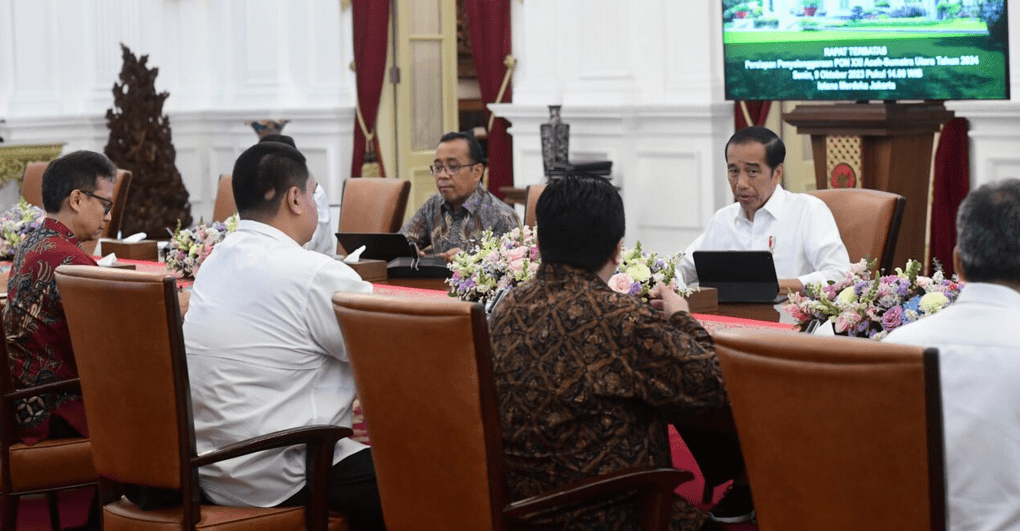 Linkalimantan.com – Presiden Joko Widodo memimpin rapat terbatas (ratas) bersama jajarannya untuk membahas persiapan Pekan Olahraga Nasional (PON) XXI di Provinsi Aceh dan Sumatra Utara (Sumut) yang akan dimulai pada September 2024 mendatang. Ratas tersebut digelar di Istana Merdeka, Jakarta, pada Senin, 9 Oktober 2023.