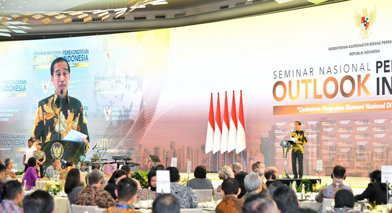 “Ekonomi outlook 2024 Indonesia sangat optimis. Optimis karena melihat kinerja ekonomi kita dan optimis karena situasi politik yang dingin menjelang pemilu 2024. Yang penting konsisten kerja keras, kerja sinergis antara pemerintah dan swasta, dan kerja yang berkelanjutan,” ucap Presiden Jokowi dalam sambutannya pada acara Outlook Perekonomian Indonesia yang diselenggarakan di Hotel St. Regis, Jakarta, Jumat, 22 Desember 2023.