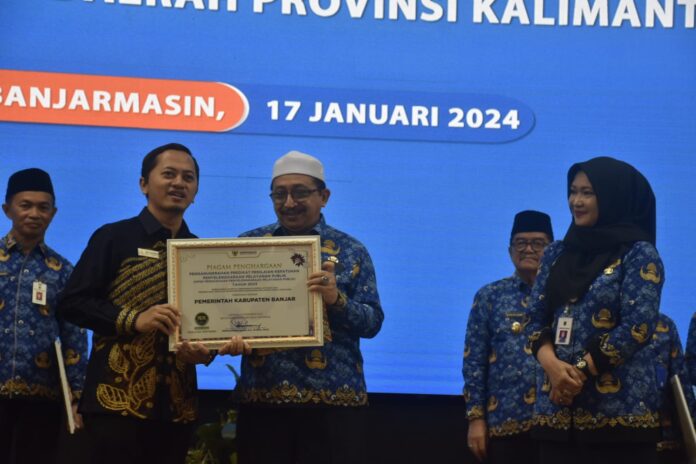 Link, Banjarmasin– Pemerintah Kabupaten Banjar raih Predikat Kualitas Tertinggi Pelayanan Publik, yaitu kategori A Zona Hijau dengan nilai 90,96.
