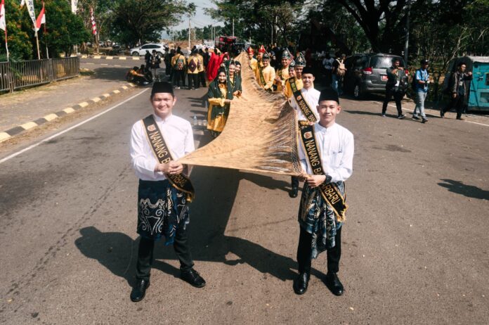 “Kain Sasirangan dibentangkan sepanjang 5,7 Kilometer dengan membentuk Kelayangan Dandang yang merupakan permainan tradisional khas Banjar,” terangnya.