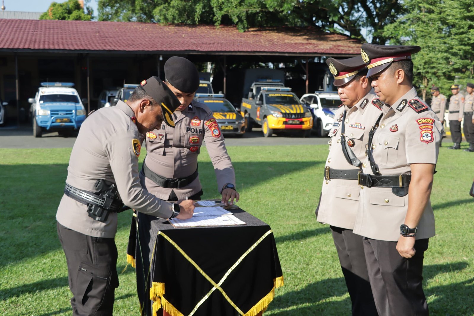 Para perwira yang melaksanakan Sertijab adalah: AKP Muhammad Alhamidie (yang sebelumnya menjabat sebagai Kapolsek Simpang Empat), dimutasi sebagai Kasat Samapta Polres Banjar. IPTU Ari Handoyo, dimutasi sebagai Kapolsek Simpang Empat. Selanjutnya IPTU Didik Sulistiyanto sebagai Kasat Intelkam, Kasat Tahti IPTU Bambang Watno, dan Kapolsek Kertak Hanyar IPTU Aulya Safi’i.