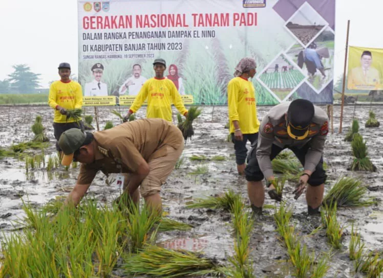 Hingga saat ini kemarau dan musibah kekeringan lahan memang masih sangat terasa. Namun hal itu bukan berarti menjadi halangan dalam melaksanakan Gerakan Nasional Tanam Padi. Di Kalimantan Selatan, Gubernur H Sahbirin tetap melaksanakan program tersebut dengan slogan menanam, menanam dan menanam.