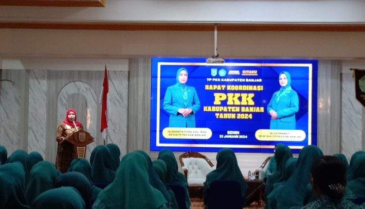 Link, Martapura – Ketua TP PKK Kabupaten Banjar Hj Nurgita Tiyas, dalam Rapat Koordinasi (rakoor) 2024 meminta, kepada semua anggota. Terutama ketua, untuk mempunyai komitmen yang kuat di 2024 mengantarkan masyarakat Kabupaten Banjar semakin maju, mandiri san agamis (Manis).