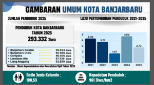 Dalam konteks ini, data kependudukan dari Dinas Kependudukan dan Pencatatan Sipil (Disdukcapil) menjadi salah satu fondasi utama. Hingga 2026, jumlah penduduk Banjarbaru tercatat sebanyak 293.332 jiwa dengan cakupan kepemilikan e-KTP mencapai 99,68 persen dan akta kelahiran sebesar 98,92 persen. Tingginya cakupan ini memastikan akurasi data sebagai dasar penyaluran program pemerintah, mulai dari bantuan sosial hingga layanan pendidikan dan kesehatan.