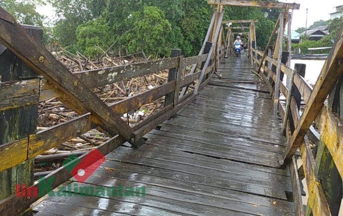 “Kalau saja di 2015 tidak dilakukan rehab sementara dengan memasang rangka besi baja pada bagian dasar jembatan kayu ulin, kemungkinan sudah roboh saat ditabrak tumpukan meterial sebanyak ini. Pembersihan tumpukan meterial ini pun kemungkinan tidak akan selesai satu hari,” katanya.
