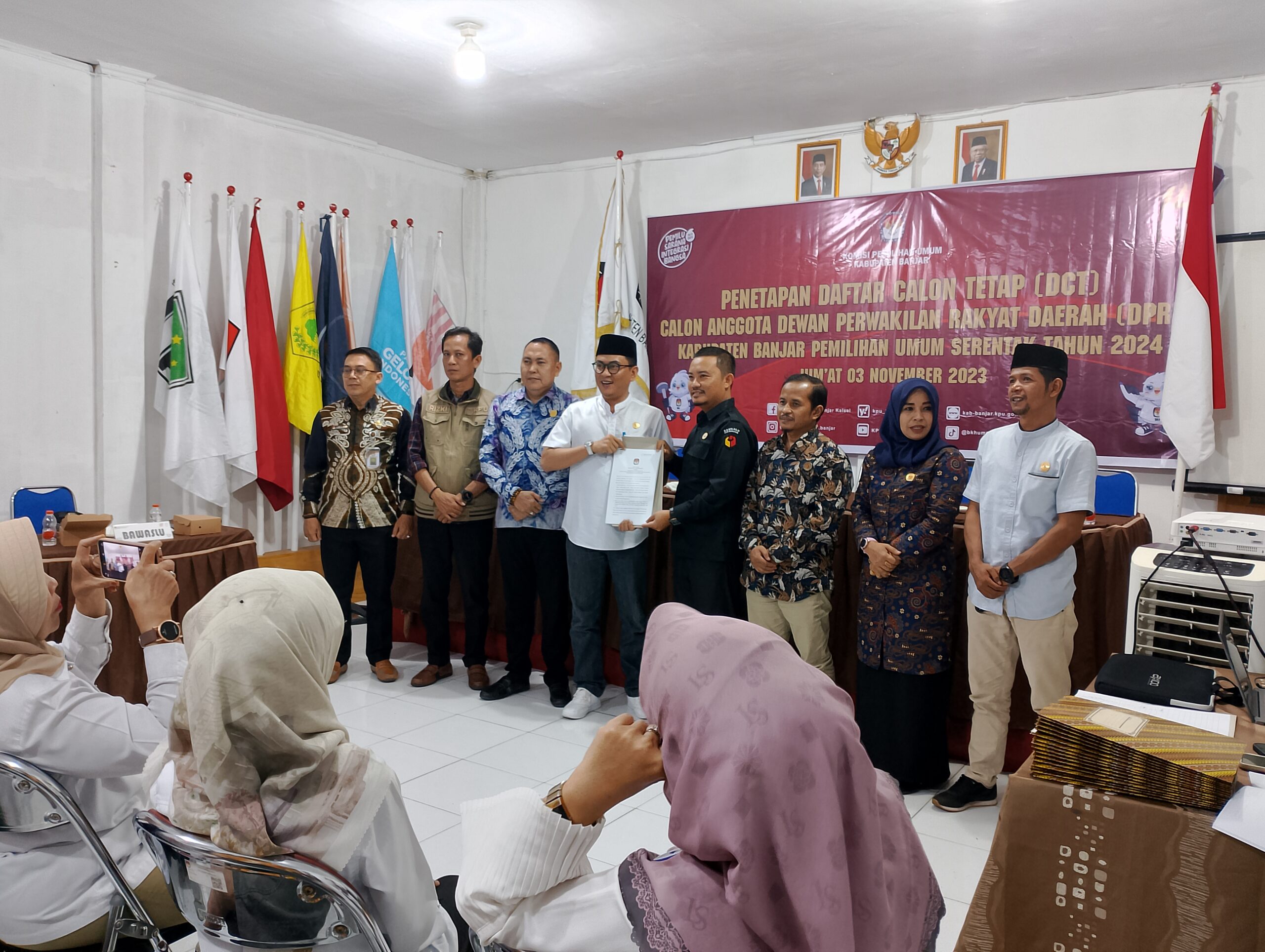 Link, Banjarbaru – Setelah melakukan pencermatan Data Calon Sementara (DCS), calon legislatif Kabupaten Banjar. Komisi Pemilihan Umum (KPU) Kabupaten Banjar resmi mengeluarkan Surat Keputusan (SK), penetapan Data Calon Tetap (DCT) calon legislatif.
