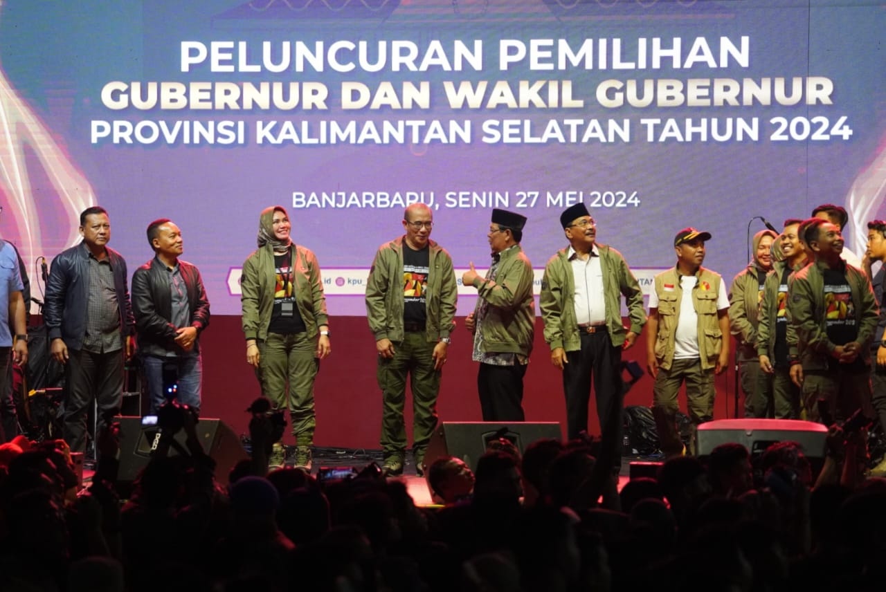 Link, Banjarbaru- Komisi Pemilihan Umum (KPU) Kalimantan Selatan menggelar peluncuran Pemilihan Gubernur dan Wakil Gubernur, di Lapangan Murjani Kota Banjarbaru, Senin (27/5/2024) malam. Peluncuran ini langsung dihadiri Ketua KPU RI Hasyim Asy’ari dan Gubernur Kalimantan Selatan Sahbirin Noor.