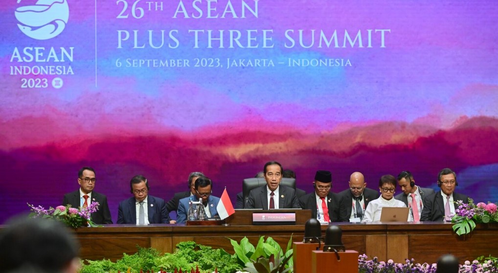 Link, Jakarta – Presiden Joko Widodo memimpin Konferensi Tingkat Tinggi (KTT) ke-26 ASEAN Plus Three (APT) yang digelar di Ruang Cenderawasih, Jakarta Convention Center (JCC), Jakarta, pada Rabu, 6 September 2023.