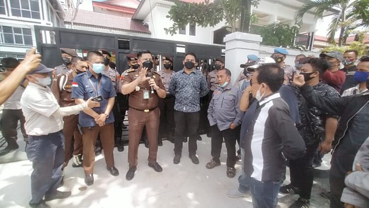 Di tempat yang bersamaan, Kasi Penkum Kejati Kalsel Romanu Novalino menjelaskan kepada massa pendemo.