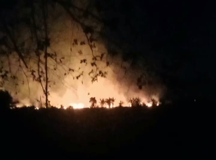 Disebutkan, api berkobar hebat pada lahan persawahan membakar jerami dan sisa batang padi usai panen. Warga setempat juga sedikit panik meminta pertolongan melalui video amatirnya lantaran titik api tersebar cukup besar dan mendekati permukiman.
