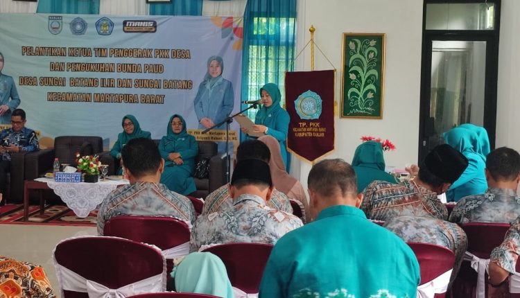 Link, Martapura – Ketua TP PKK Kecamatan Martapura Barat Hj Emmi Erliyanti, melantik dan mengukuhkan ketua TP PKK dan Bunda PAUD di dua desa di Martapura Barat. Yakni TP PKK dan Bunda Paud Desa Sungai Batang Sri Rezeki Dyah Putri S, serta Desa Sungai Batang Ilir Norsinah, di Aula Kecamatan Martapura Barat, Kamis (7/12/2023).