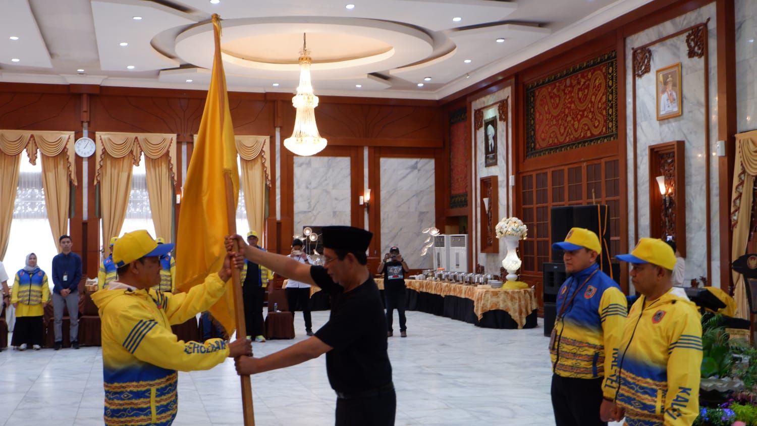 Link, Banjarmasin – Atlet Banua Kalimantan Selatan yang akan mengikuti ajang Pekan Olahraga Nasional (PON) XXI, dilepas Gubernur Kalsel Sahbirin Noor ditandai dengan penyerahan bendera pataka, di Gedung Mahligai Pancasila, Rabu (28/8/2024).